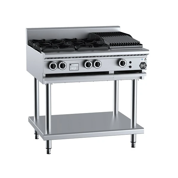 The B+S Black series standard and combination boiling top incorporates a solid stainless steel frame that’s built to last. The unit also features an open stand and under shelf, which is ideal for storing cooking utensils.