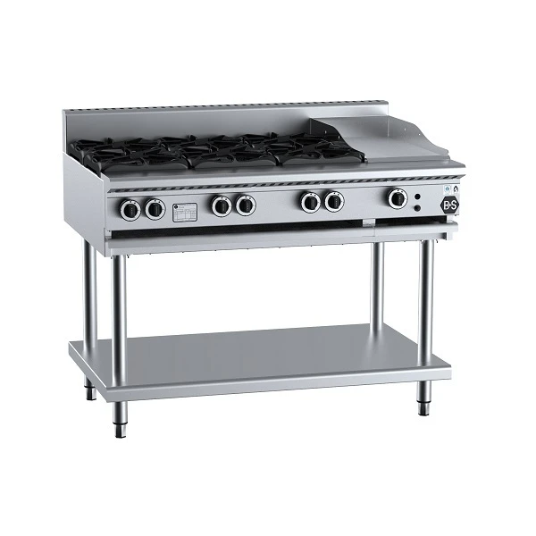 The B+S Black series standard and combination boiling top incorporates a solid stainless steel frame that’s built to last. The unit also features an open stand and under shelf, which is ideal for storing cooking utensils.
