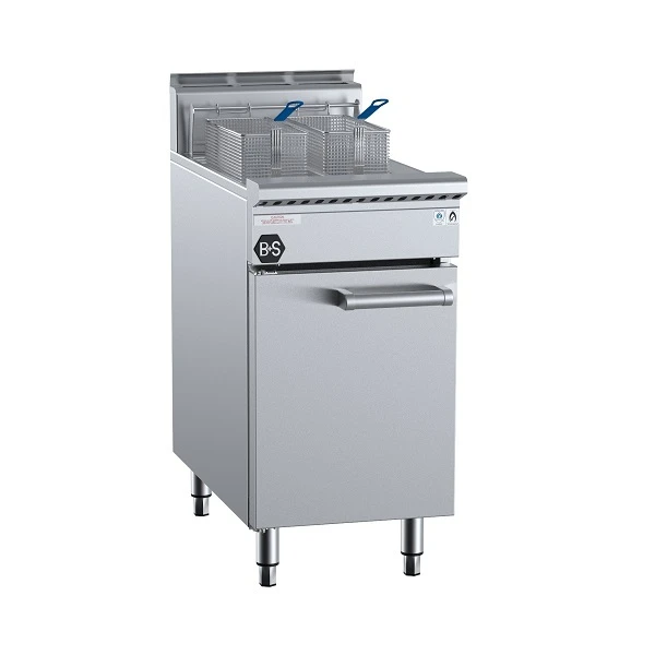 The B+S Black series turbo fryer has been designed on a stainless steel cabinet frame. It is built with a highly efficient ceramic lined infrared burner which radiates the heat evenly along the pan. This assists in temperature recovery time while also reducing gas consumption.