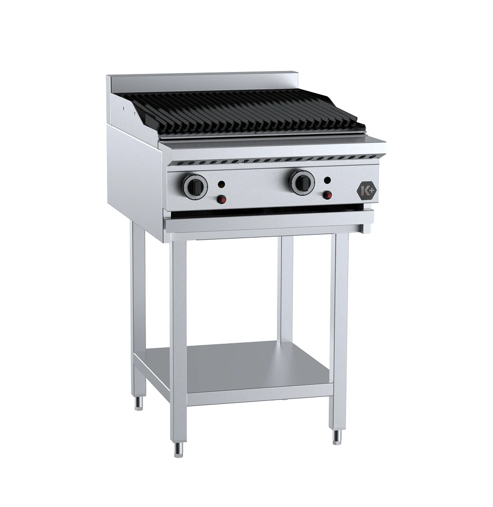 The K+ Char Grill features a heavy-duty complete stainless steel frame with under shelf and 25.6Mj burners.