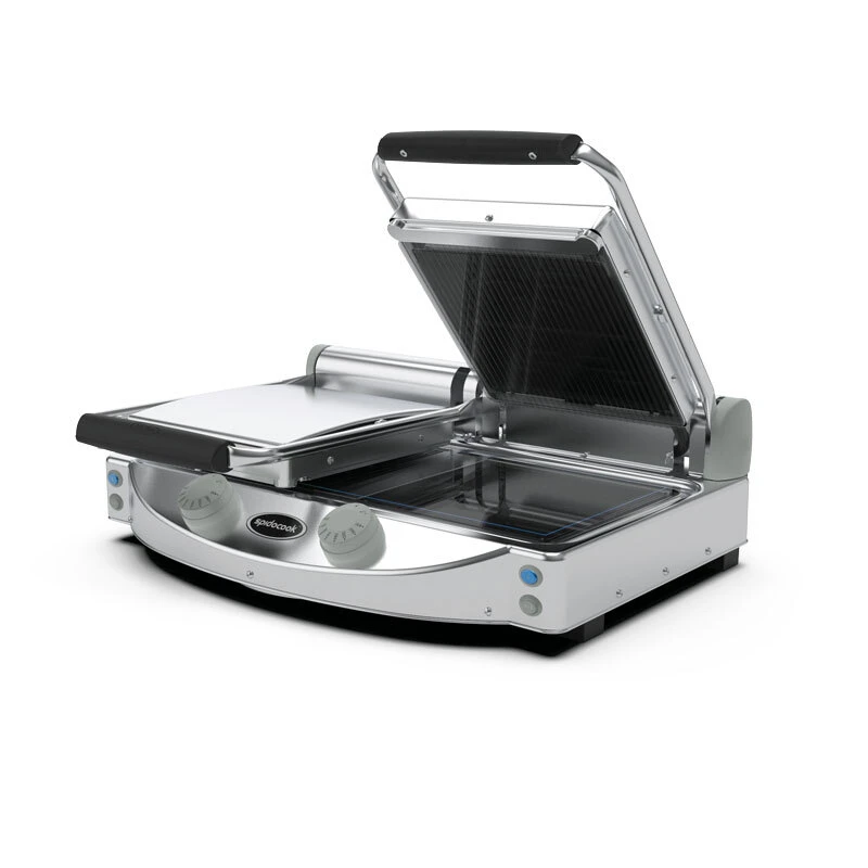 The SPIDOGLASS line of contact grills with its extreme ease of use and excellent grilling results is perfect for bars and fast food restaurants and can be a valuable tool in the kitchen. The glass ceramic contact grills and fry tops can cook many products from sandwiches and focaccia to grilled meat or vegetables, providing excellent results. They are safe to use and extremely fast and easy to clean which gives clear benefits in terms of energy savings and increased productivity in the kitchen.