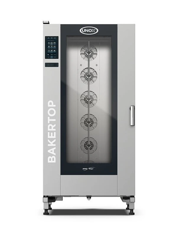 Technologically advanced combi oven for fresh or frozen baking processes and for gastronomy cooking processes (dehydrating, steaming, low temperature baking, sous vide cooking, roasting, grilling, pan frying, regeneration and plated regeneration) thanks to the Unox Intensive Cooking and Intelligence Performance technologies which guarantee perfect results and repeatability for any load size. Automatic management of cooking processes (CHEFUNOX) for perfect results even without a trained staff.