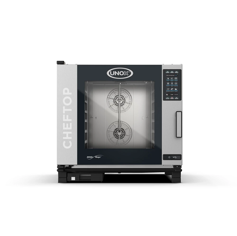Technologically advanced combi oven for fresh or frozen baking processes and for gastronomy cooking processes (dehydrating, steaming, low temperature baking, sous vide cooking, roasting, grilling, pan frying, regeneration and plated regeneration) thanks to the Unox Intensive Cooking and Intelligence Performance technologies which guarantee perfect results and repeatability for any load size. Automatic management of cooking processes (CHEFUNOX) for perfect results even without a trained staff.