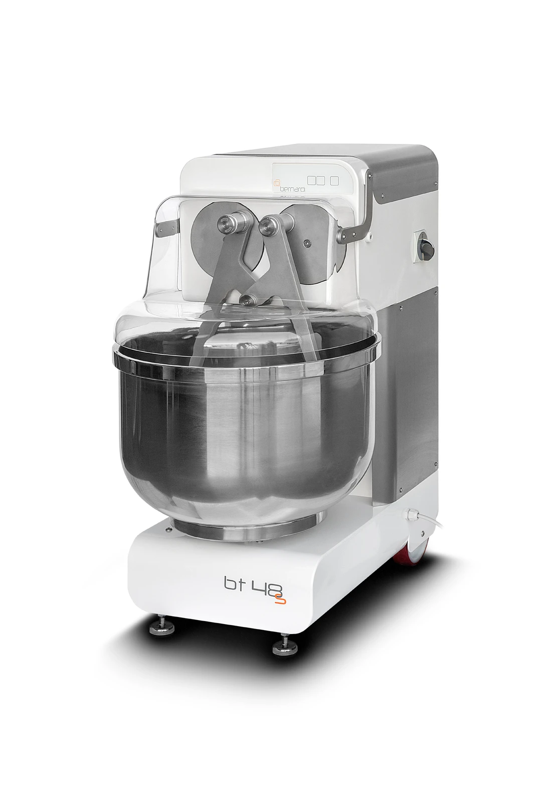 Let yourself be conquered by BTS Range. The BTs range represents the top of line double arm mixer range from Bernardi. Capable of every kind of dough, the BTS-48 will perfectly knead and oxygenates 2kg to 12kg of dough to a standard that praises the highest tradition. Its 5-speed operation, reinforced bowl and three phase motor drive are some of the features that give the BTS series the edge. The patented compact system enables the double arms to adapt to minimal space requirements and offer exceptional performance. Ideal for preparing large quantities of yeast in confectionaries, bread of high hydration, dough for pizza, focaccia, croissants, short pastry, flaky pastry, egg pasta, brioches, panettone and more. It strings dough with high hydration to perfection, even until 100%.
