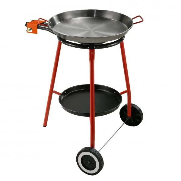 Steel Paella Pan 450mm Gas burner D400. 2 rings (11,40 KW=37,5 Mj) Gas regulator and hose: 2.0 kg/h Outlet pressure 2.8 kpa