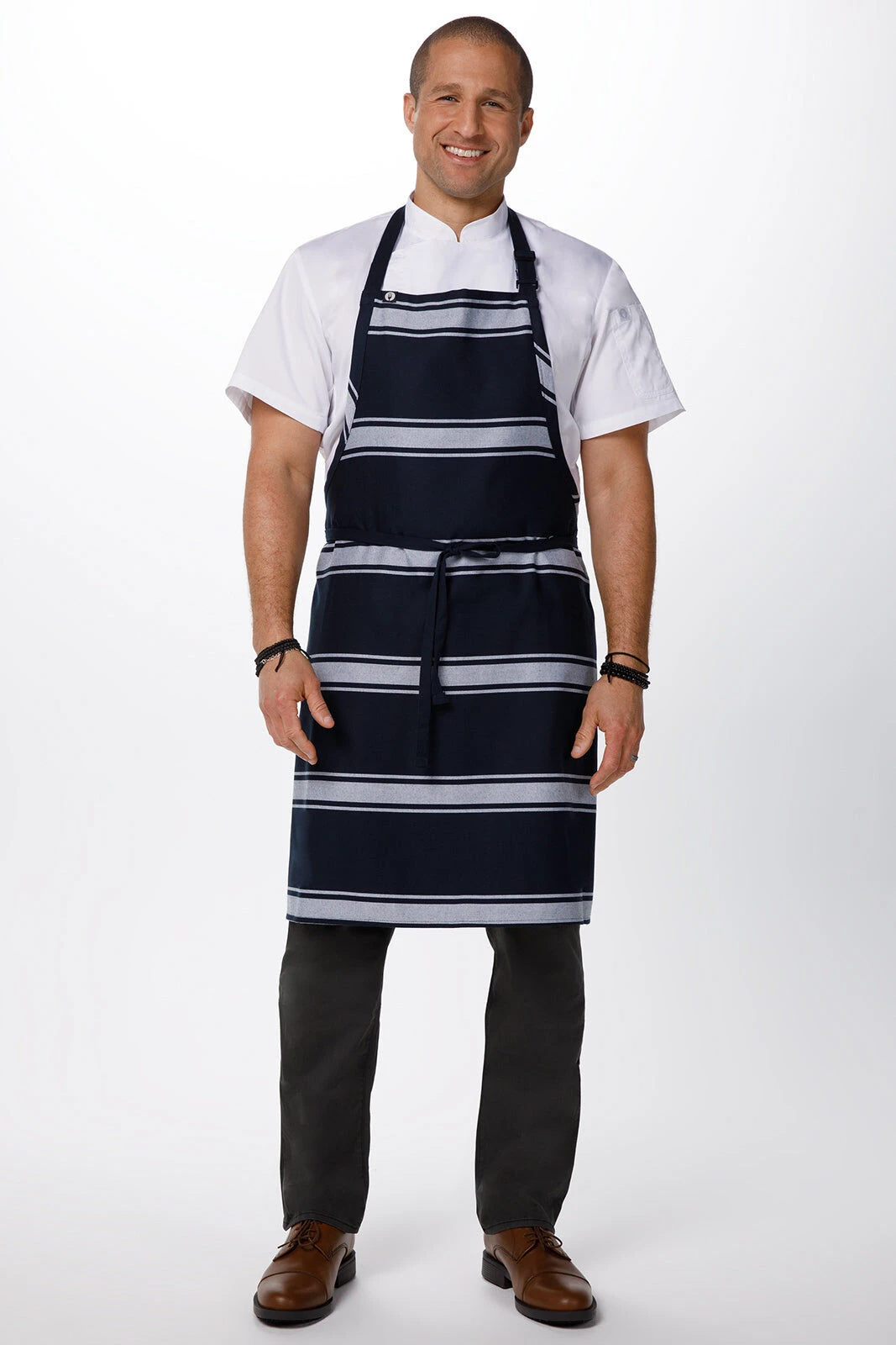 Chef Works Navy Butcher Stripe Bib Apron – BS