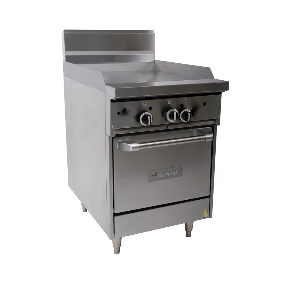 The Garland GF24-G24L-NG Heavy Duty Griddle Restaurant Range combines Garland’s 15mm thick cast-iron “H” Burner Griddle with a space saver oven for maximum efficiency and reliability in your kitchen. With Garland’s burners providing the most effective heat distribution in the foodservice industry in addition to having the largest useable cooking surface, the Garland Restaurant Series is guaranteed to work as hard as you do.
