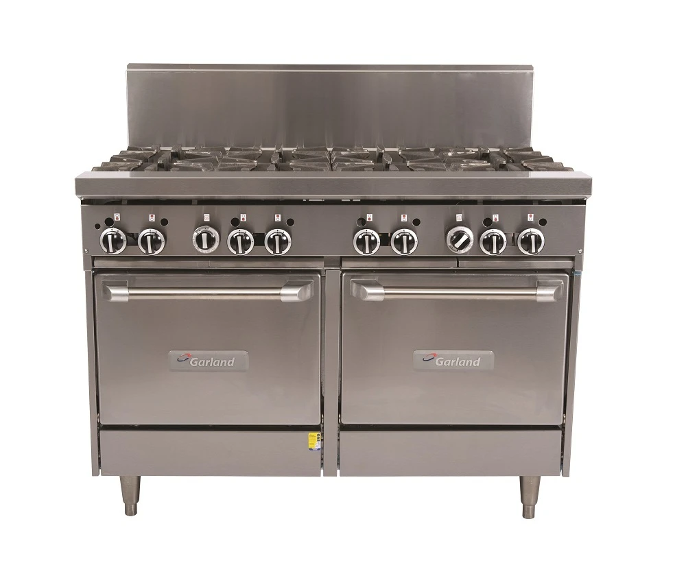 The Garland GF48-8LL-NG Heavy Duty 8 Burner Restaurant Range combines Garland’s patented cast-iron Starfire Pro® burners with two space saver ovens for maximum efficiency and reliability in your kitchen. With Garland’s patented burners providing the most effective heat impingement pattern in the foodservice industry in addition to having the largest useable cooking surface, the Garland Restaurant Range is guaranteed to work as hard as you do.