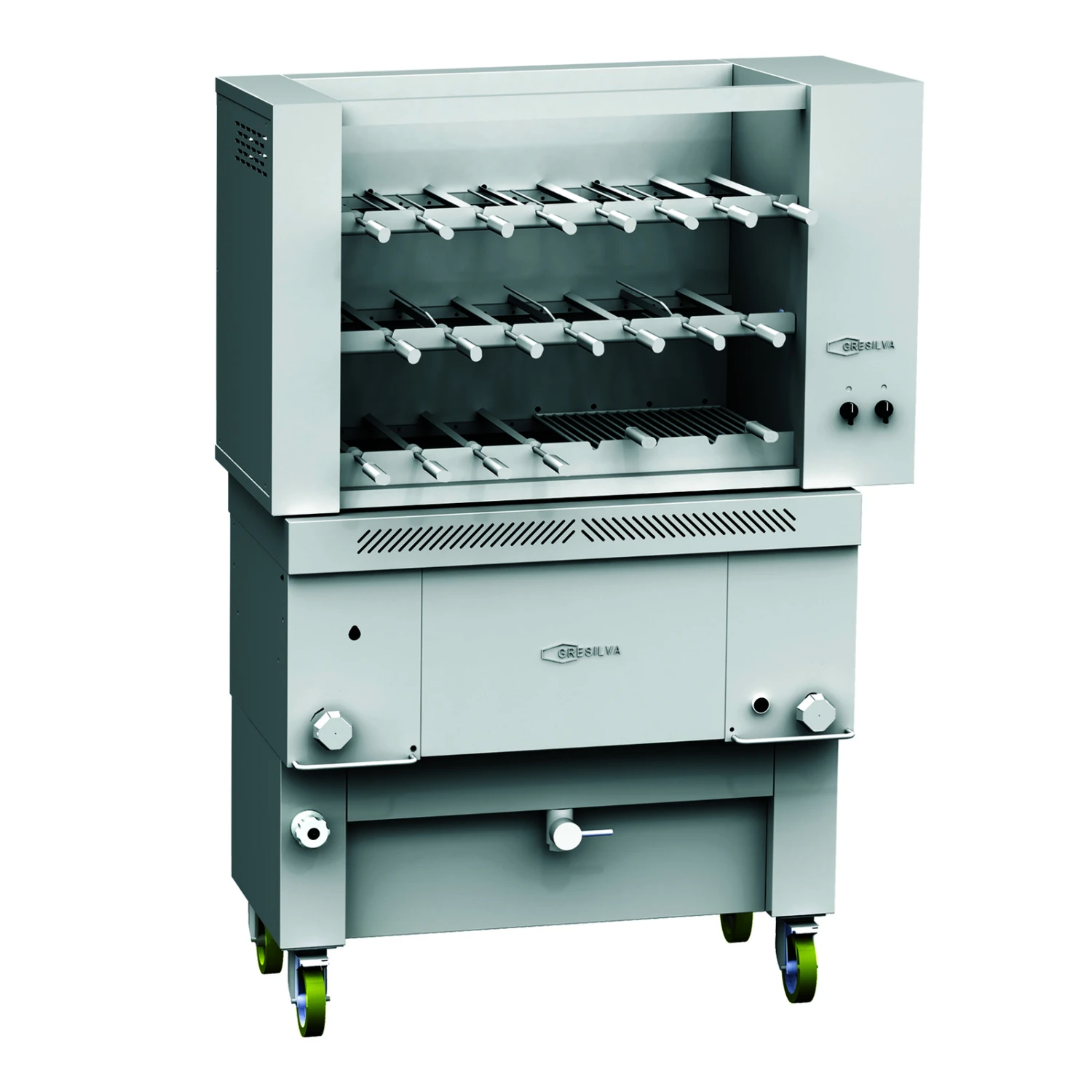 - This Rodizio-style grill has twenty skewer sockets set out in three levels, and two flat grids for cooking sliced meat and other food. The GRESILVA Multifunctional Rodizio Grill is made in AISI 304 stainless steel throughout, for greater hygiene and easy cleaning