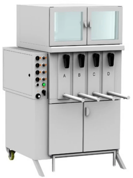 The vertical electric grill is the right choice for cooking real barbecued chicken. Its innovative structure lets you grill chicken and other food in a healthy way, resulting in succulent, extremely tasty food with no smoke. Using its water bath along with the lateral heat source at the side ensures no benzopyrenes are formed on the product and any fat and grease scraps are easily collected or disposed of as they are seperated from the water in a grease collection tank. Quick, economical, barbecued chickens in 20 min is only the beginning as these vertical grills are capable of grilling a large selection of other menu items such as wings, ribs, steaks, fillets and more with perfection. The GV4 is distinguished by its 4 compartments each with their independent timer-controlls and alarms.