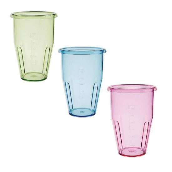 Give your delicious milkshakes an extra splash of colour by using these stylish cups with your Apuro single milkshake mixer (CT938-A). Designed to clip perfectly onto your machine, the three cups come in attractive pink, green and blue colours to complement all kinds of flavours. Each 900ml milkshake cup features a graduated side, so you can measure your servings with complete precision and cut down on costly waste. Made from a strong BPA-free Tritan material, they’re food-safe and highly durable – and can be quickly cleaned in a commercial dishwasher too.