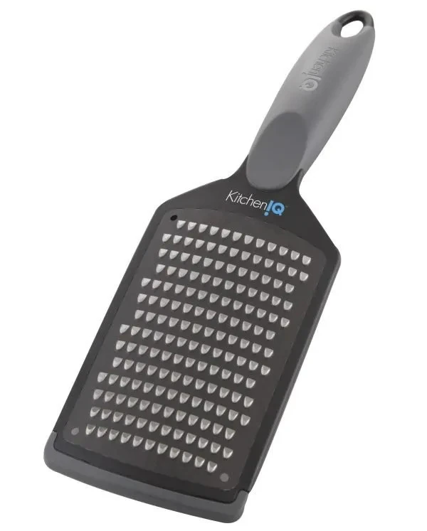 In addition to the Better Zester, the KitchenIQ™ line includes three paddle style graters: fine, coarse and extra coarse. These wider blade paddle style graters are available in Stealth Charcoal Gray as well as fun whimsical colors; Fine Yellow, Coarse Blue and Extra Coarse Orange. Each of these graters includes the V- shaped teeth and non-stick coating for smoother and easier grating. The Fine Grater is perfect for grating hard parmesan cheeses and pureeing garlic and onions. Use the fine grater for grating fresh ginger root