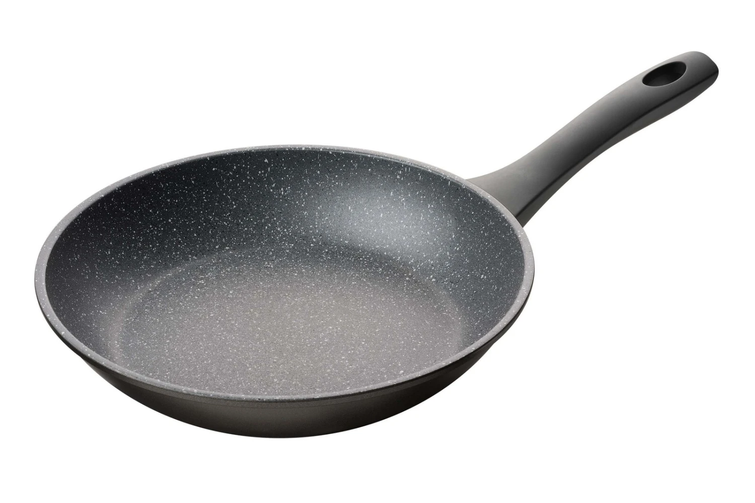Enhance your everyday cooking with this PYROSTONE 30cm frypan. Carefully crafted from forged aluminium, the range features a stone line finish for quick and easy cooking, long lasting food release and faster clean up. Cookware that provides extreme toughness, superior non stick surfaces with superb abrasion resistance. Enjoy healthier cooking using less oil on the special PFOA free non-stick coating! The soft touch ergonomic handle is attached to the cookware for superior strength and durability, designed for heat resistance to stay cool for longer on cooktops. Easy to clean surface with no visible rivets. Suitable for all cooktops including induction and oven safe to 180-degrees Celsius.