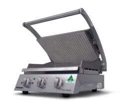 Featuring elements embedded directly into smooth, high pressure die-cast aluminium plates, the cooking surface produces an even, extremely efficient heat transfer ensuring food is cooked rapidly with even colouration. The Roband Grill Station truly is a must-have for cafes, takeaways, sandwich shops or anywhere that toasting and/or grilling is required.