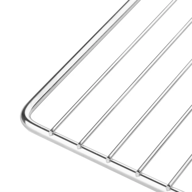 Offering superb functionality and reliability at an affordable price, this Vogue 330x530mm stainless steel oven grid is a must-have for any busy commercial kitchen. Featuring a wire mesh design, the grid allows air to circulate freely, making for a more even bake and faster cooling to drastically speed up your preparation and serving times.