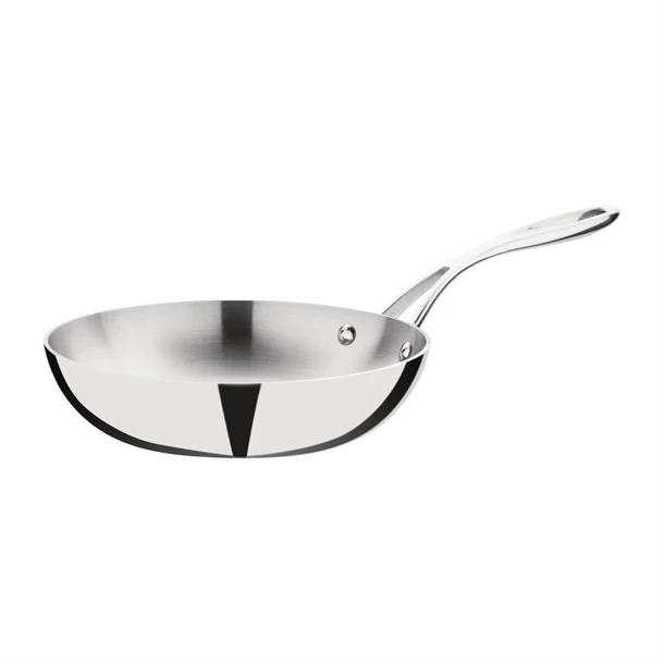 The 200mm Vogue tri-wall induction frying pan helps give you the flexibility and performance to create the very best cooking results you could hope for. Designed from the ground up for exceptional thermal distribution, the tri-wall pan prevents hot spots that are common in traditional pans, reducing the likelihood of burnt dishes and food waste.