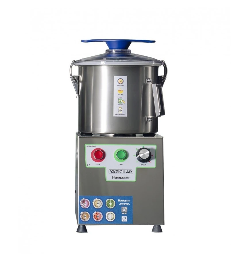 The Yazicilar DIV Series is an international Power-house variable speed benchtop food processors capable of the thickest mixtures. You control the speed for every application during processing. The AC motor inverter inside allows maximum Power and durability for years to come and is the most advanced technology for reliable variable speed. Their direct-drive design ensures high speed, low noise, and a maintenance free operation. It has a small footprint thanks to the Powerful direct-drive form factor. Direct drive means there is no belt to drive the knive unit as the knive is directly attached to the motor shaft. The silicone cover seal combined with the long knife shaft ensures the highest liquid capacity. The scraper enables faster processing times and homogeneous mixtures. Capable of processing all organic material including meats, dough, hard products, and liquids. The L9DIV-HP is distinguished by its 9-litre capacity bowl.